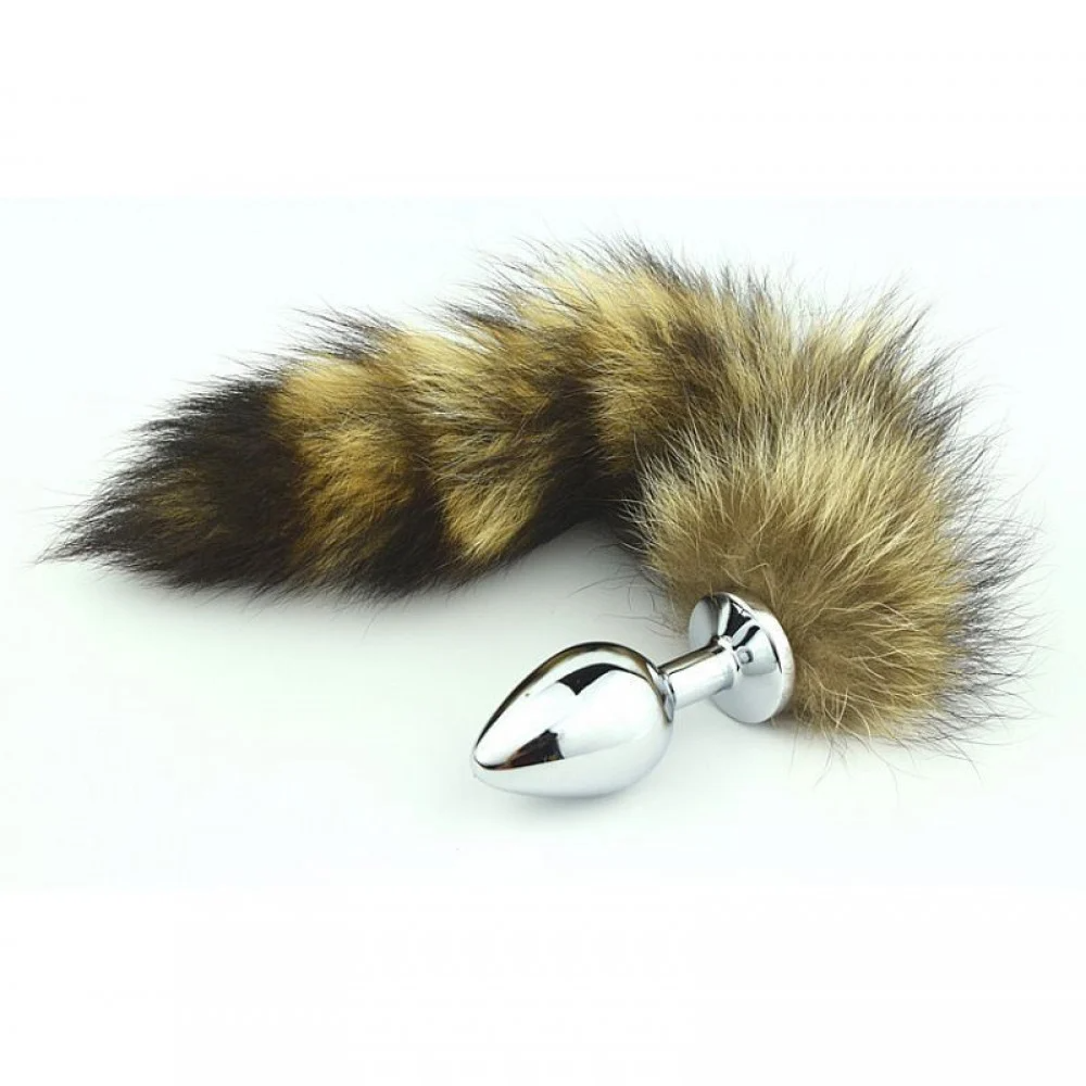Plug anal em aço fox tail em formato anatômico de facil penetração, feito em alumínio fundido e polido a mão, com rabo na base extremamente macio, rabo de raposa.