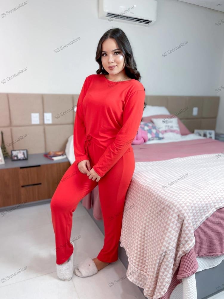 Sei mais confortável pijama para suas noites frias. Disponível no vermelho e verde água no tamanho GG
