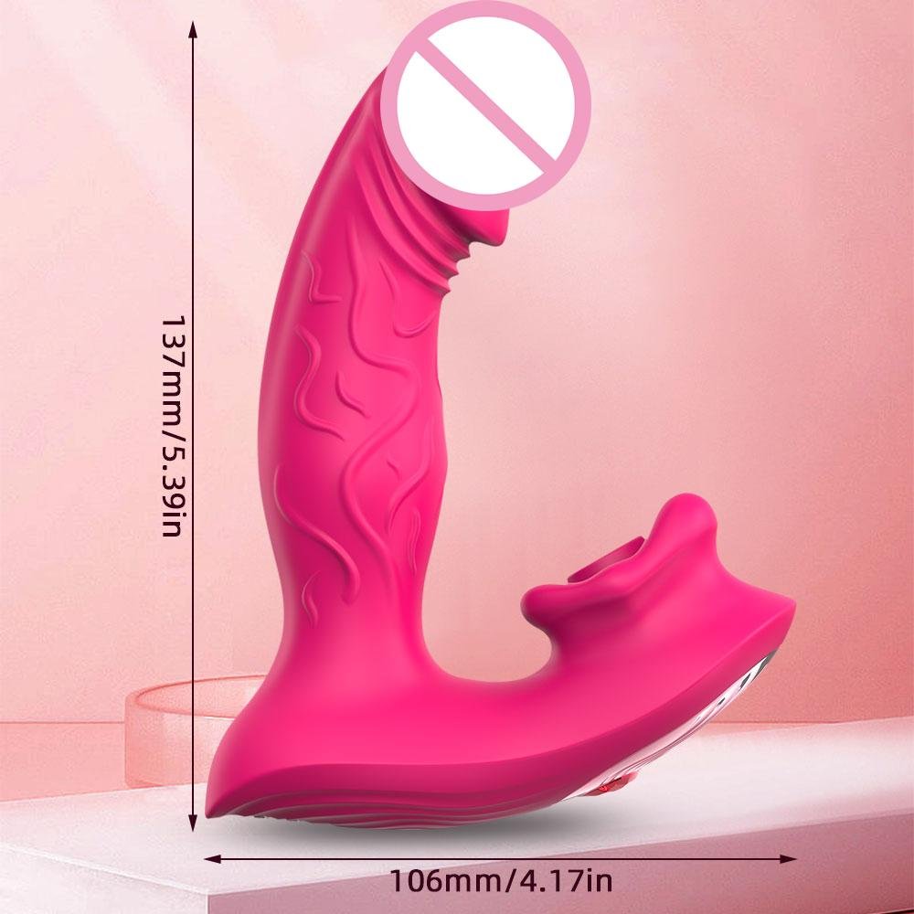 Vibrador e sugador com controle remoto. 10 sensações em um único vibrador. Sugador de clitóris em formato de boca pra dar maior realismo. Parte penetravel formato de um pênis realístico com glande, e imitação das veias. Para quem não abre mão de um toy muito funcional. Não nos responsabilizamos pelo mau uso do produto. Usar somente lubrificante a base d'água.